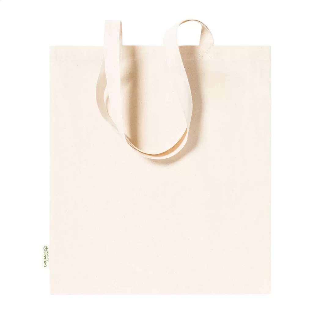 Organikus pamut bevásárlótáska hosszú hordfüllel. 100% organikus pamut, 140 g/ m².