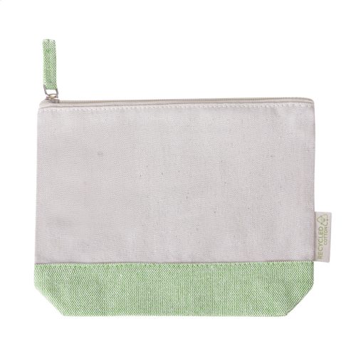 Cipzáras, kéttónusú újrahasznosított pamut kozmetikai táska. 100% újrahasznosított pamut, megkülönböztető újrahasznosított pamut címkével.