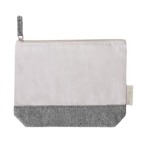 Cipzáras, kéttónusú újrahasznosított pamut kozmetikai táska. 100% újrahasznosított pamut, megkülönböztető újrahasznosított pamut címkével.