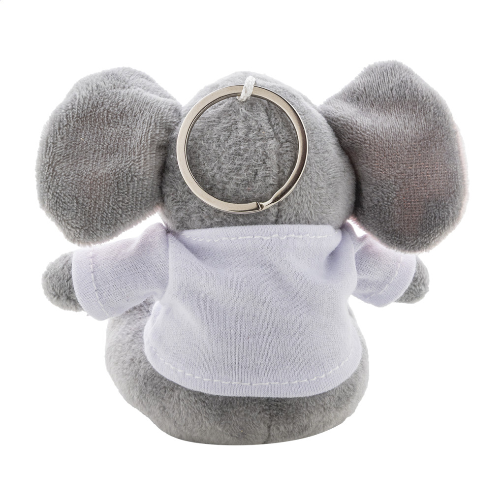 Plüss elefánt kulcstartó nyomtatható pólóval.