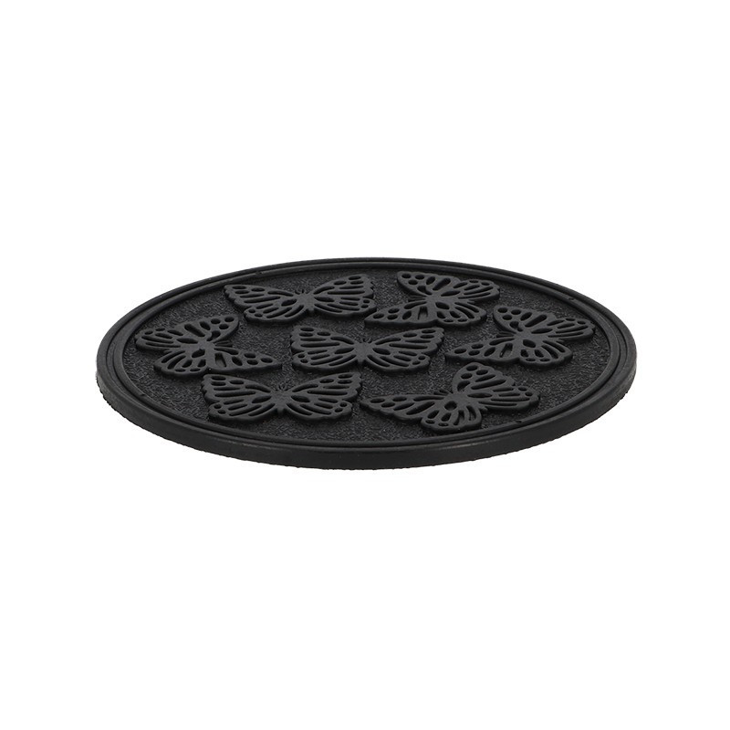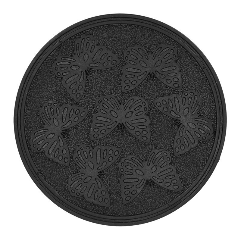 Újrahasznosított gumiból készült lépőkő, pillangós mintával, 30 cm-es átmérővel. A dekoratív lépőkőnek köszönhetően mindig száraz és tiszta marad a cipőd a kertben, és biztonságosan kertészkedhetsz anélkül, hogy a véletlen megsértenéd a földből frissen előbújt hajtásokat. A mintás, domború felület a csúszásmentességről is gondoskodik. Akár kerti ösvényt is kialakíthatsz a gyepen, a veteményesben vagy a virágoskertben, ha több darabot helyezel el egymás után sorban.