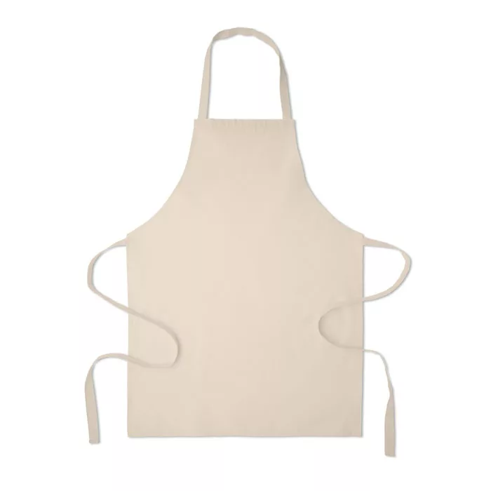 Fogyasztás előtti újrahasznosított pamut kötény, 180 g/m² (70% újrahasznosított pamut és 30% RPET poliészter). Ez az anyag nyomtatás után zsugorodhat.