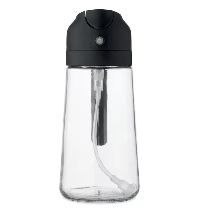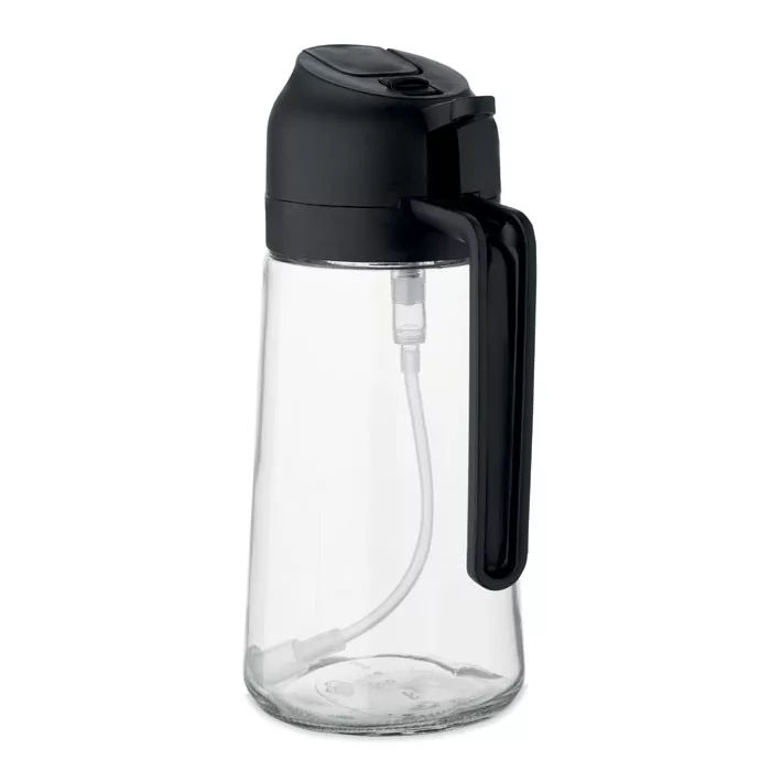 2 az 1-ben üveg olajtartó és szórófejes adagoló PP fedéllel, PE szívószállal. Űrtartalom: 450 ml.