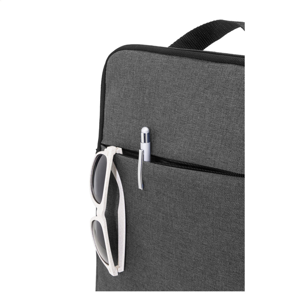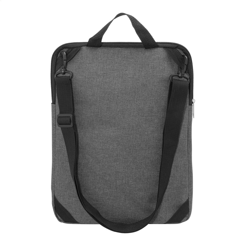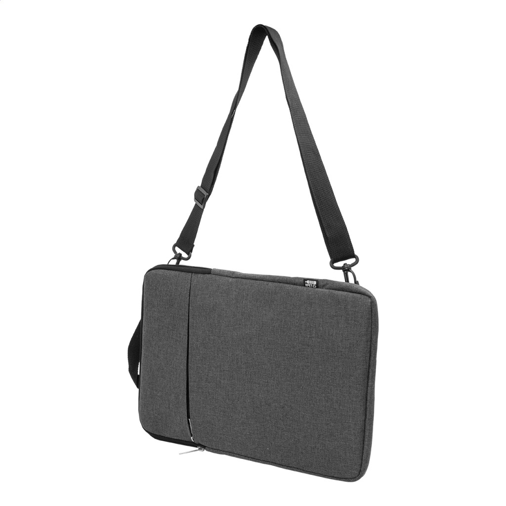 600D RPET poliészter, párnázott irat- vagy laptop válltáska cipzáras rekesszel és cipzáras elülső zsebbel. Akár 15"-os laptopokhoz is alkalmas. Állítható vállpánttal, függőleges és vízszintes pozícióba állítható. Megkülönböztető RPET címkével.