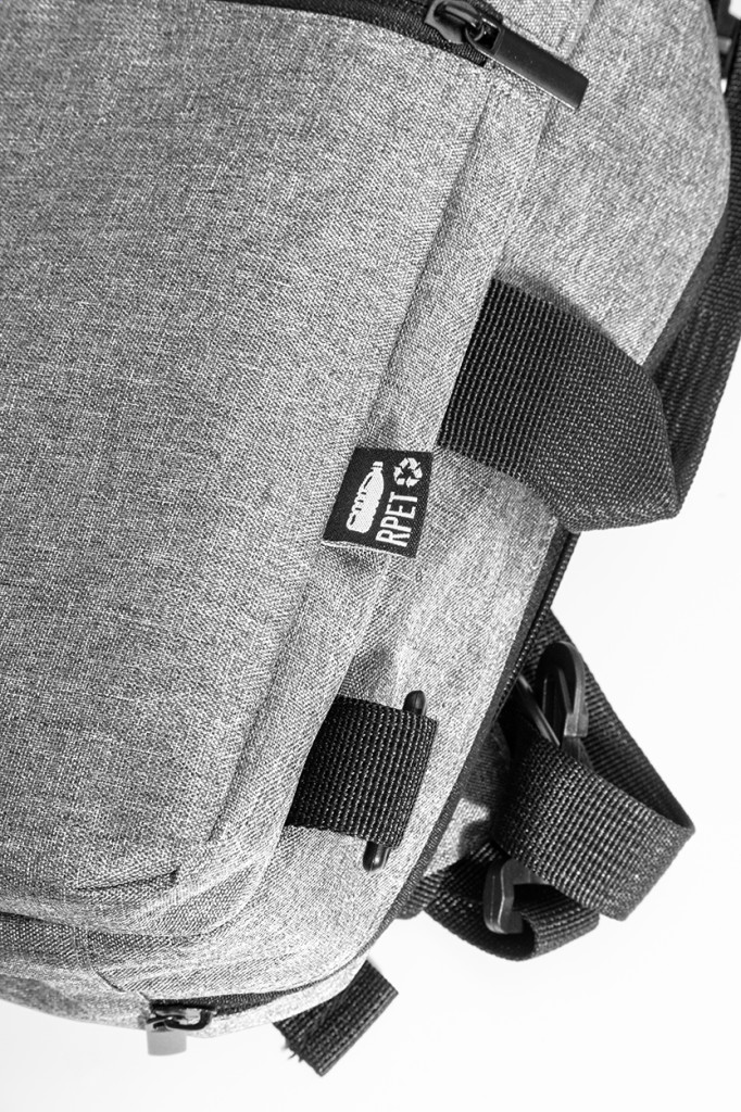 Kétfunkciós RPET dokumentum hátizsák cipzáras rekesszel, 2 cipzáras elülső zsebbel és párnázott laptop rekesszel (15"). Párnázott hátrésszel és vállpántokkal. Tartalmaz egy további levehető vállpántot, amely irattáskaként is használható. 600D RPET poliészter, megkülönböztető RPET címkével.