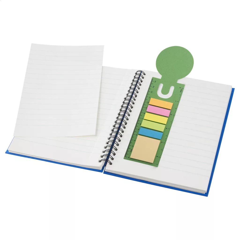 Ökológiai búzaszalma műanyag könyvjelző és vonalzó 25 öntapadós jegyzetlappal és 125 oldaljelölővel (5 féle színben).