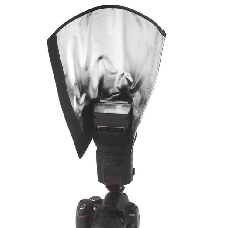 Belső oldala ezüst színű, így a vakuról rávetülő fényt kellő erősséggel tudja továbbítani a formájának megfelelő irányba.
