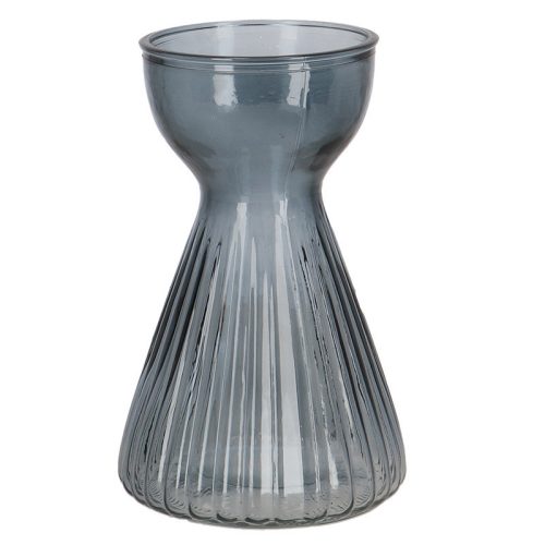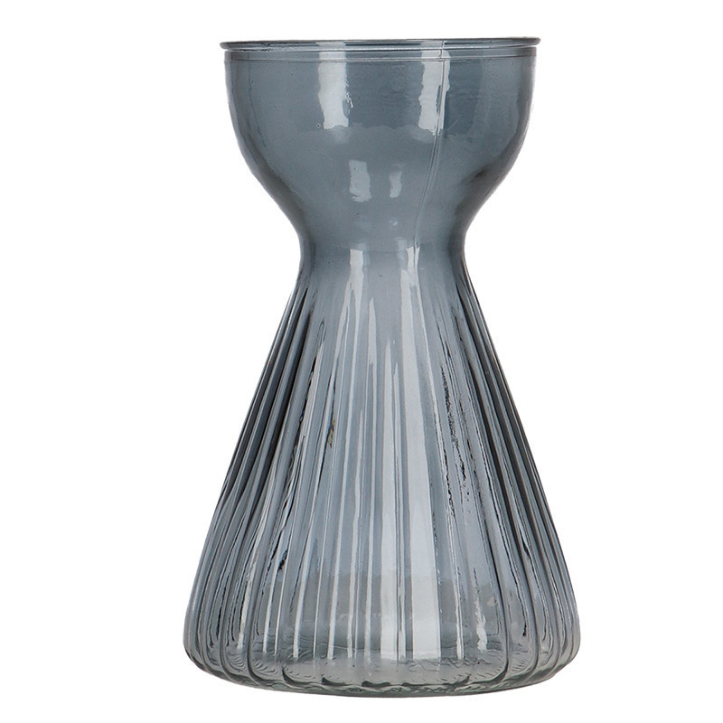 Krókusz növény gyökereztető bordázott üvegváza, 12,3 cm átmérőjű, szürkéskék