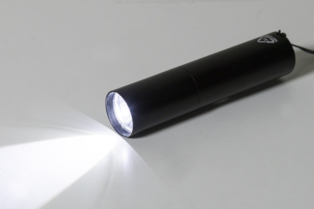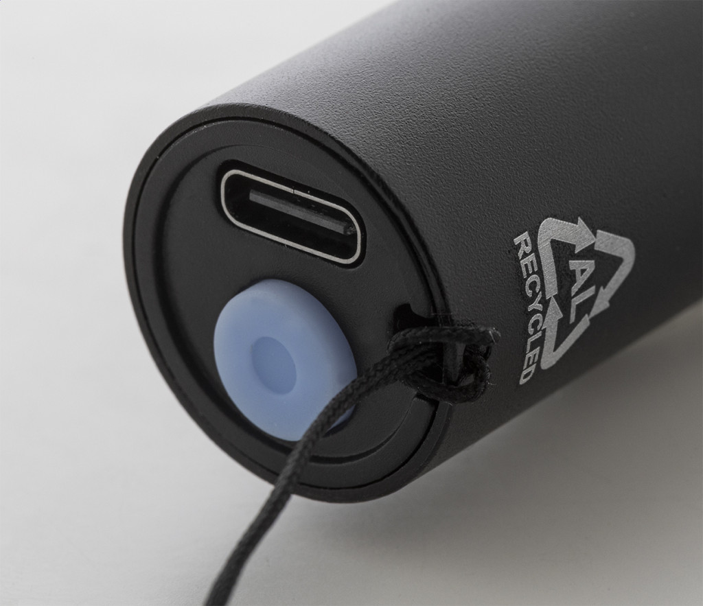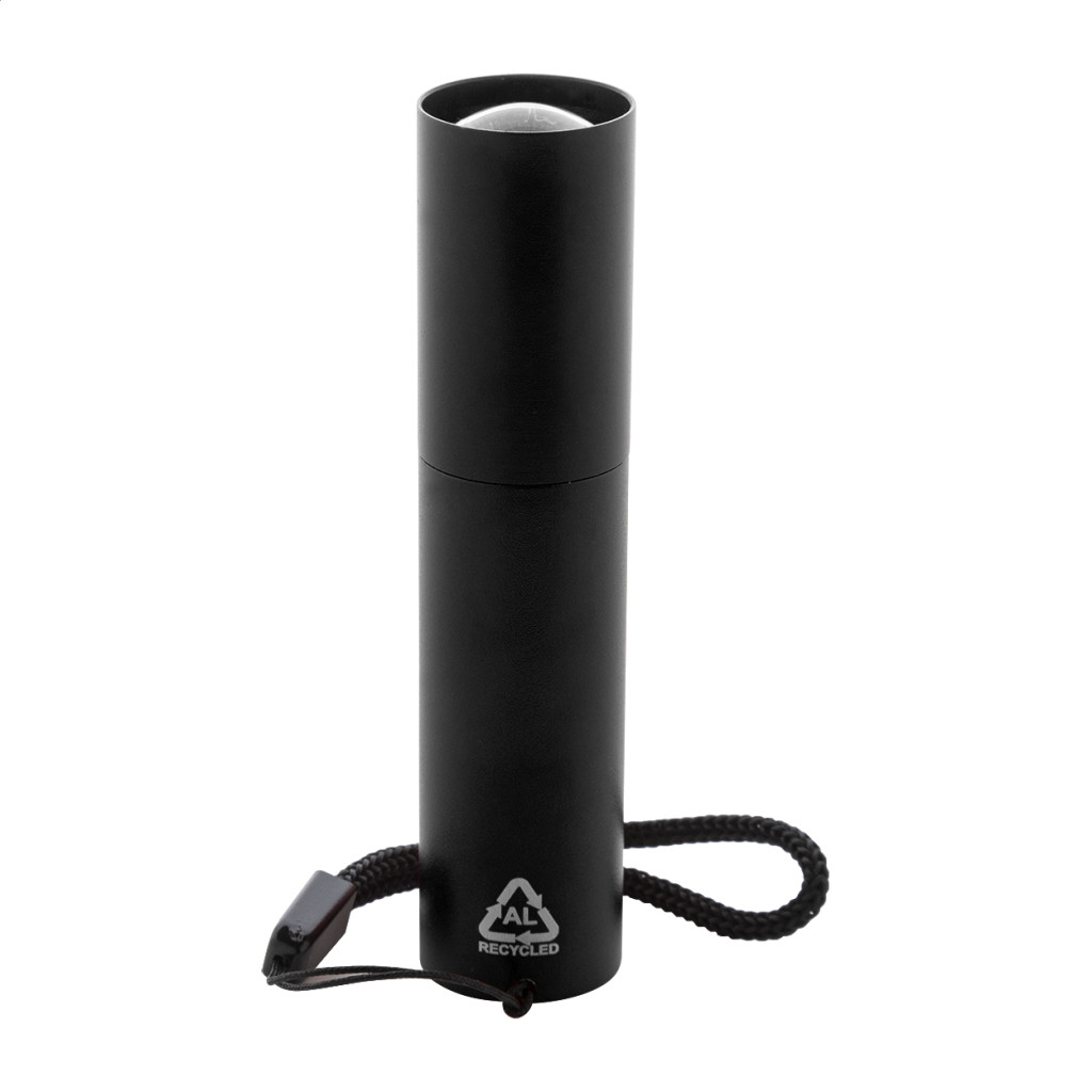 Újrahasznosított alumíniumból készült elemlámpa beépített USB-s akkumulátorral (400 mAh) és hordpánttal. Nagyítható, nagy teljesítményű COB fénnyel és 3 világítási móddal. USB töltőkábellel.